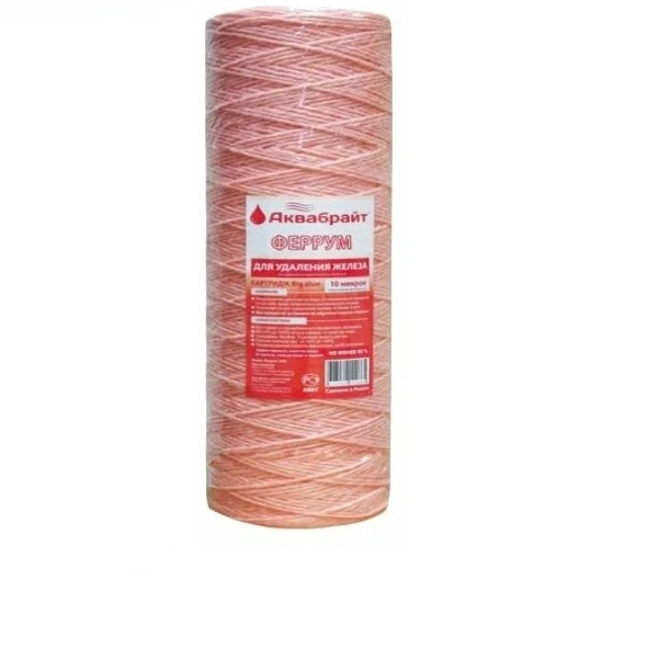 Картридж АКВАБРАЙТ ФЕРРУМ-10 ББ изготовлен из ионообменного веревочного полипропилена с пищевым допуском.
